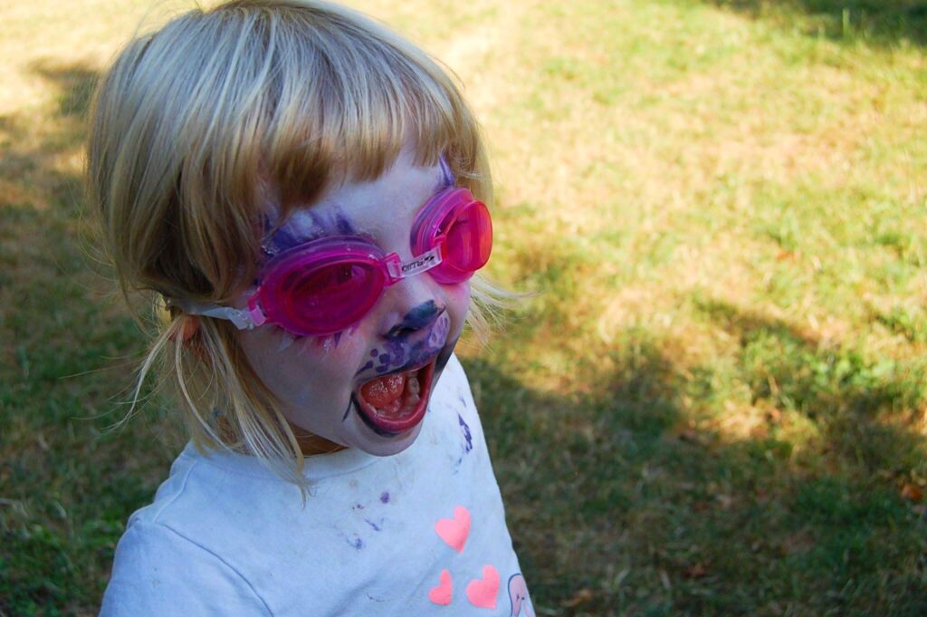 My daughter used to play in the sprinkler, even in shoulder seasons until she turned blue and she still delighted. We’d paint faces, get the bubble machine going, and favourite tunes on that the fund would begin. Or I’d fill a big tupperware bin with water and dump a bunch of spare containers in the back yard. Whenever you include water, kids have fun.